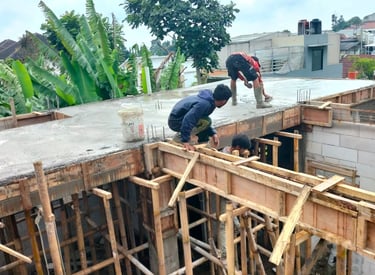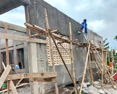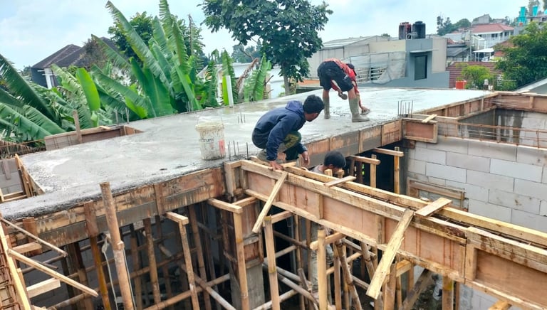 Pelaksanaan pembangunan rumah dengan tenaga ahli yang berpengalaman dan material berkualitas.